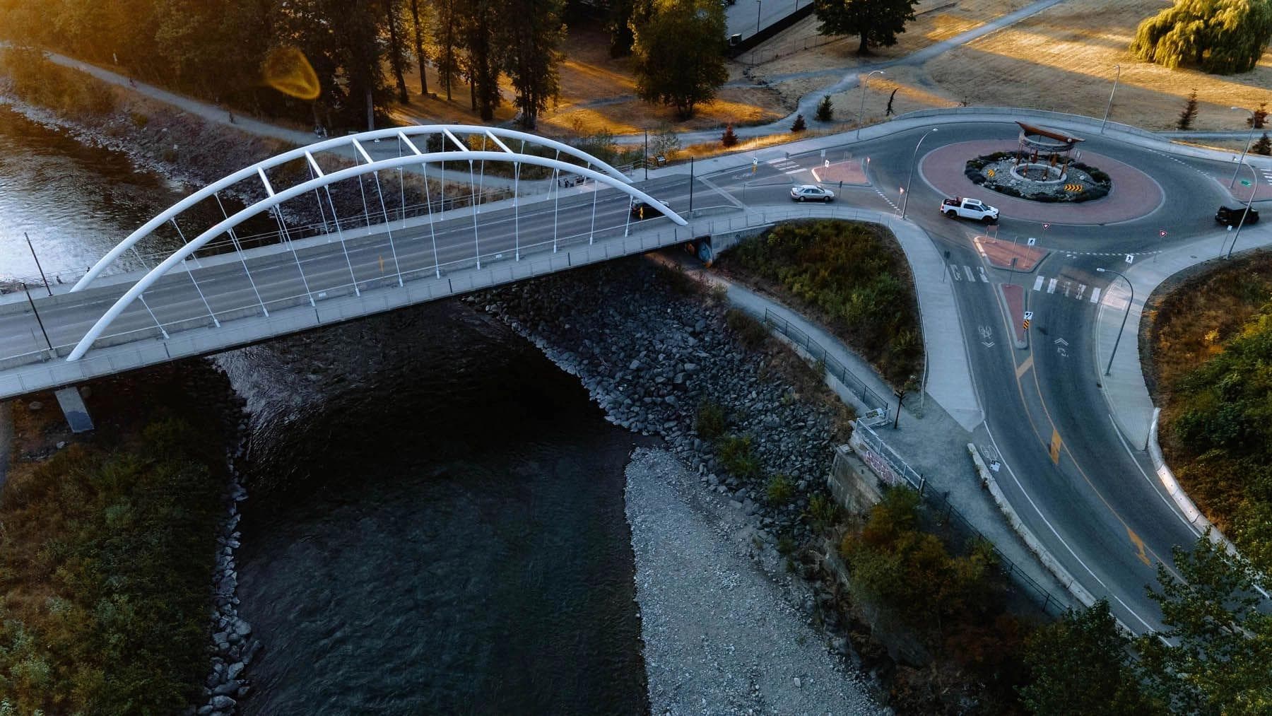 Emil Anderson Construction with Klohn Crippen Berger and Urban Systems Ltd were contracted to replace the existing Vedder Bridge with a new structural steel tied-arch structure. The update provided increased flood clearance, wider lanes, and new multi-use pathways. In addition to the bridge structure, the project scope included realignment of the approaching roads, relocation of existing utilities, and construction of a new single-lane roundabout. Of the three teams that submitted responses to the RFP, EAC’s proposal received the highest technical score and was well under the city's budget.