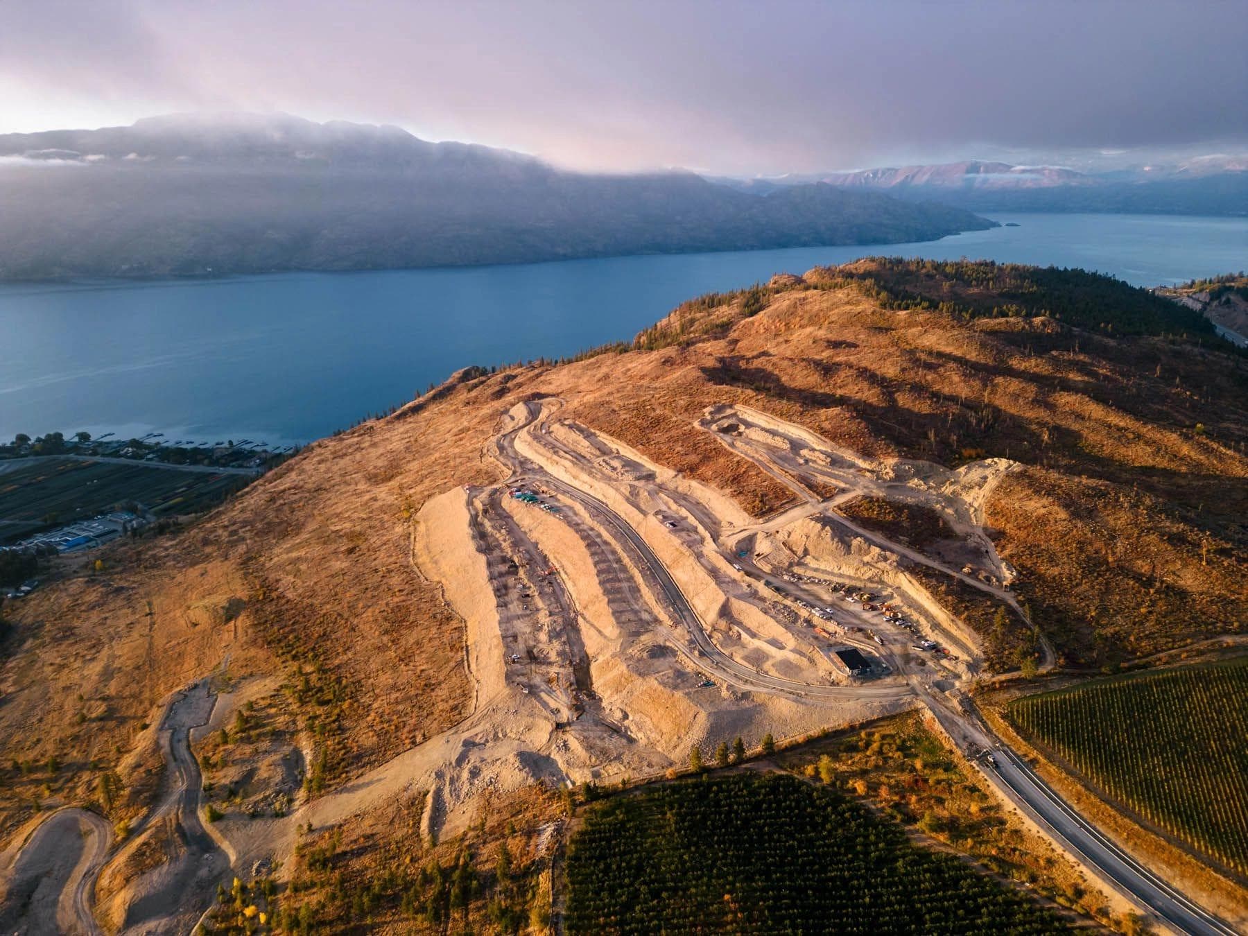 Shorerise is a new master-planned community in West Kelowna with stunning views of Lake Okanagan. EAC leveraged its expertise to manage land development, install water mains under Highway 97, and handle road building and underground utilities. Phase 1 includes five show homes, single-family lots, and villa homesteads.
